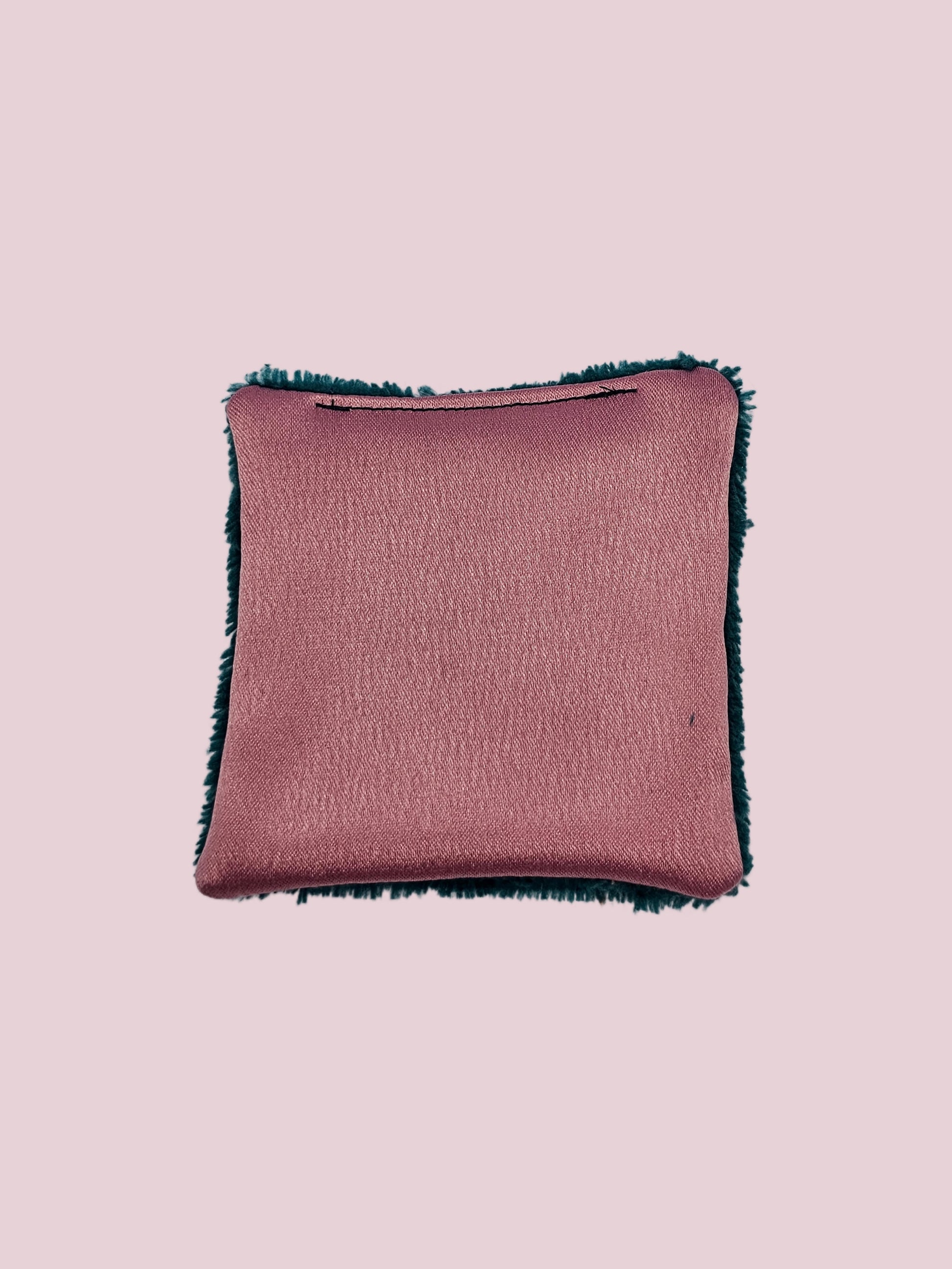 La partie absorbante est fait à base de bambou et la partie decorative est issue d'une chute de tissus et en l'occurrence d'un tissu en satin rose