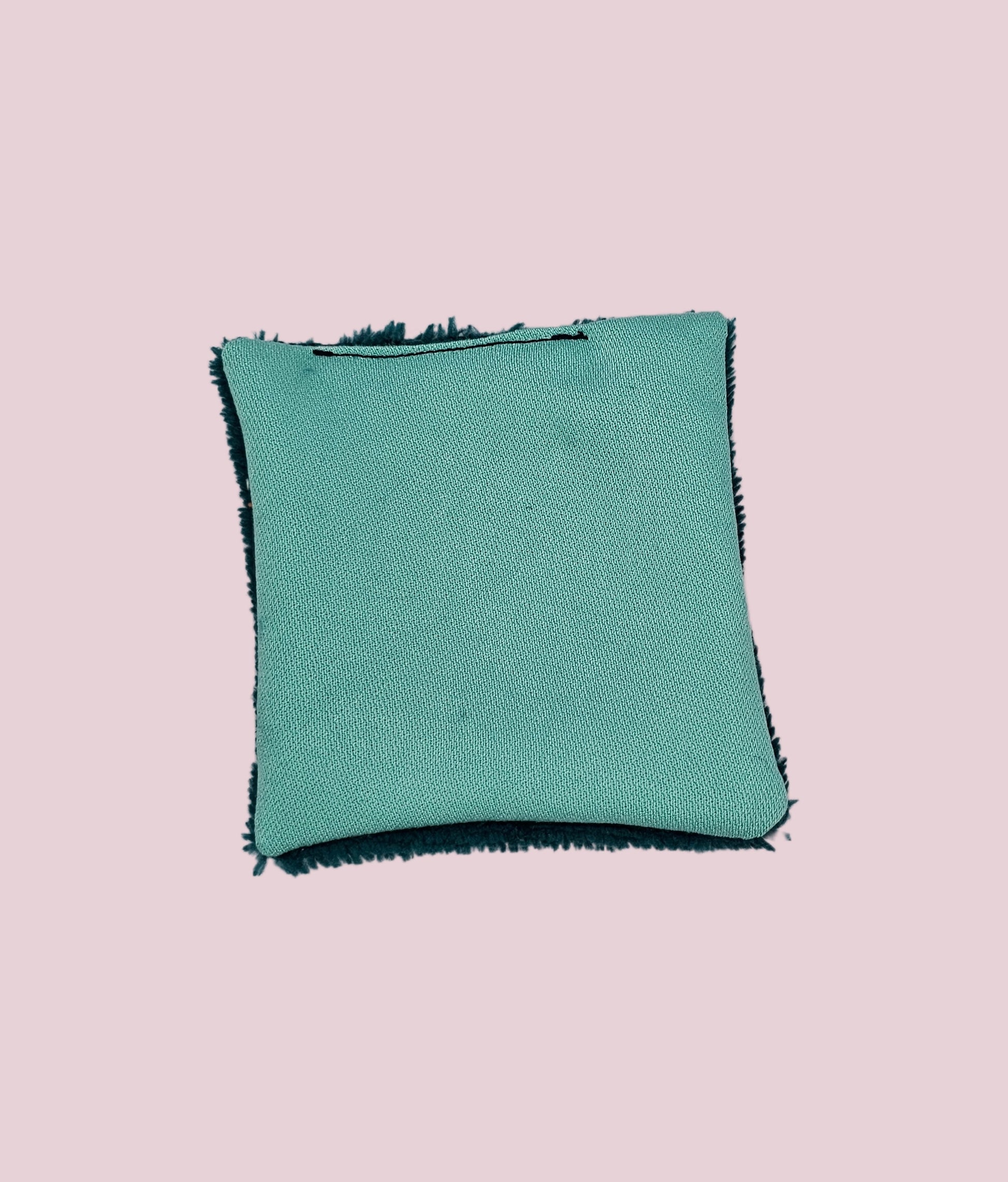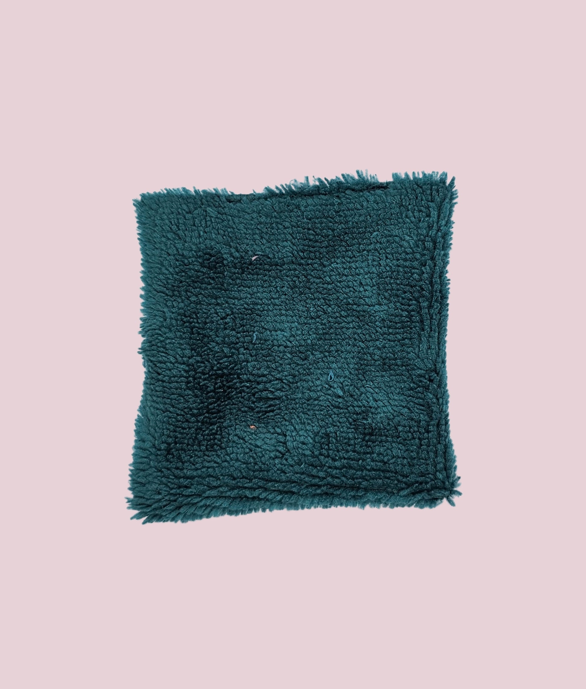 La partie absorbante est fait à base de bambou et la partie decorative est issue d'une chute de tissus et en l'occurrence d'un tissu bleu turquoise